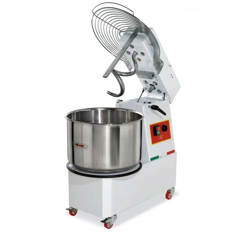 • Caldero, gancho espiral, divisor de la masa, rejilla de seguridad y demás elementos que entran en contacto con la masa fabricados enteramente en acero inoxidable.