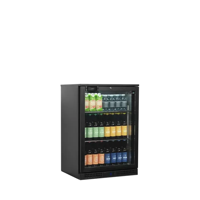 El refrigerador de backbar está fabricado con materiales sólidos y cuenta con estantes cromados ajustables con rejillas estrechas para proporcionar un alto grado de capacidad y estabilidad. Además, incluye una puerta reversible de aluminio con doble acristalamiento templado. Esta ayuda a ahorrar energía, pero también proporciona una excelente visibilidad del producto.