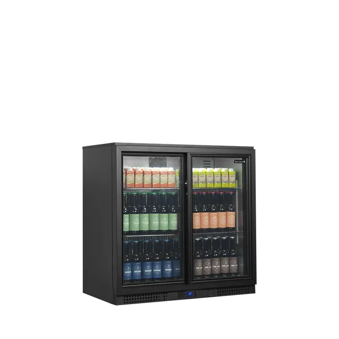 El refrigerador de backbar está fabricado con materiales sólidos y cuenta con estantes cromados ajustables con rejillas estrechas para proporcionar un alto grado de capacidad y estabilidad. Además, incluye una puerta reversible de aluminio con doble acristalamiento templado. Esta ayuda a ahorrar energía, pero también proporciona una excelente visibilidad del producto.