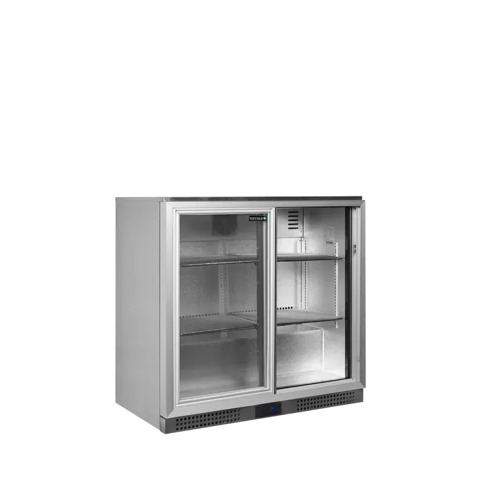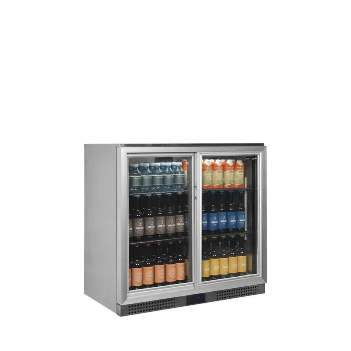 El refrigerador de backbar está fabricado con materiales sólidos y cuenta con estantes cromados ajustables con rejillas estrechas para proporcionar un alto grado de capacidad y estabilidad. Además, incluye una puerta reversible de aluminio con doble acristalamiento templado. Esta ayuda a ahorrar energía, pero también proporciona una excelente visibilidad del producto.
