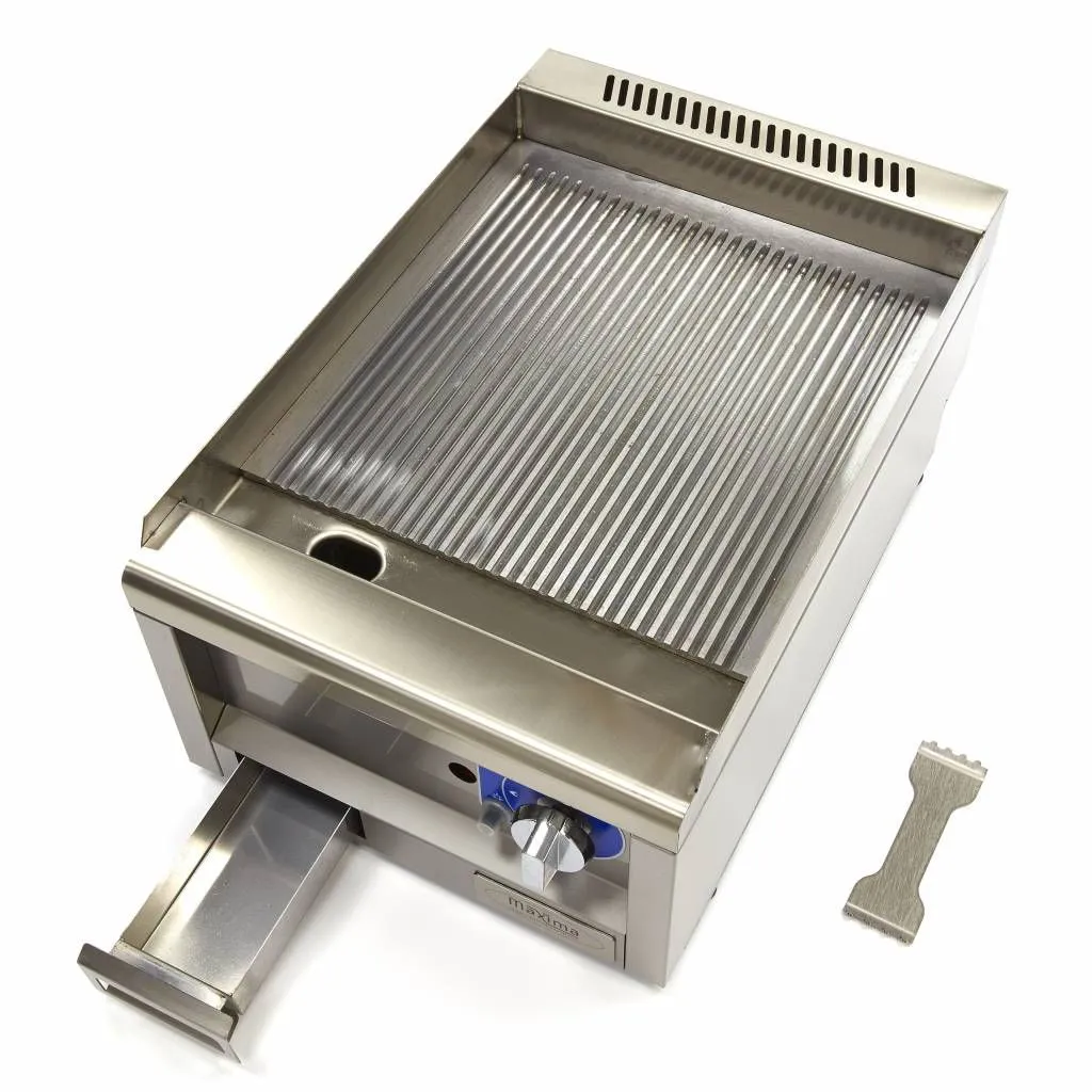 - Además de la superficie acanalada, también hay disponible una plancha de superficie lisa.