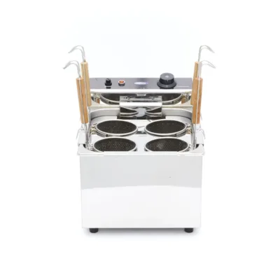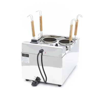 La cubeta de acero inoxidable tiene las esquinas redondeadas y la parte superior del cocedor de pasta está soldada sin fisuras. El termostato de seguridad permite ajustar la temperatura entre 30 y 110°C. Las eficaces resistencias de la cubeta de agua garantizan un calentamiento rápido. Puede colocar el cocedor de pasta profesional sobre una mesa o encimera