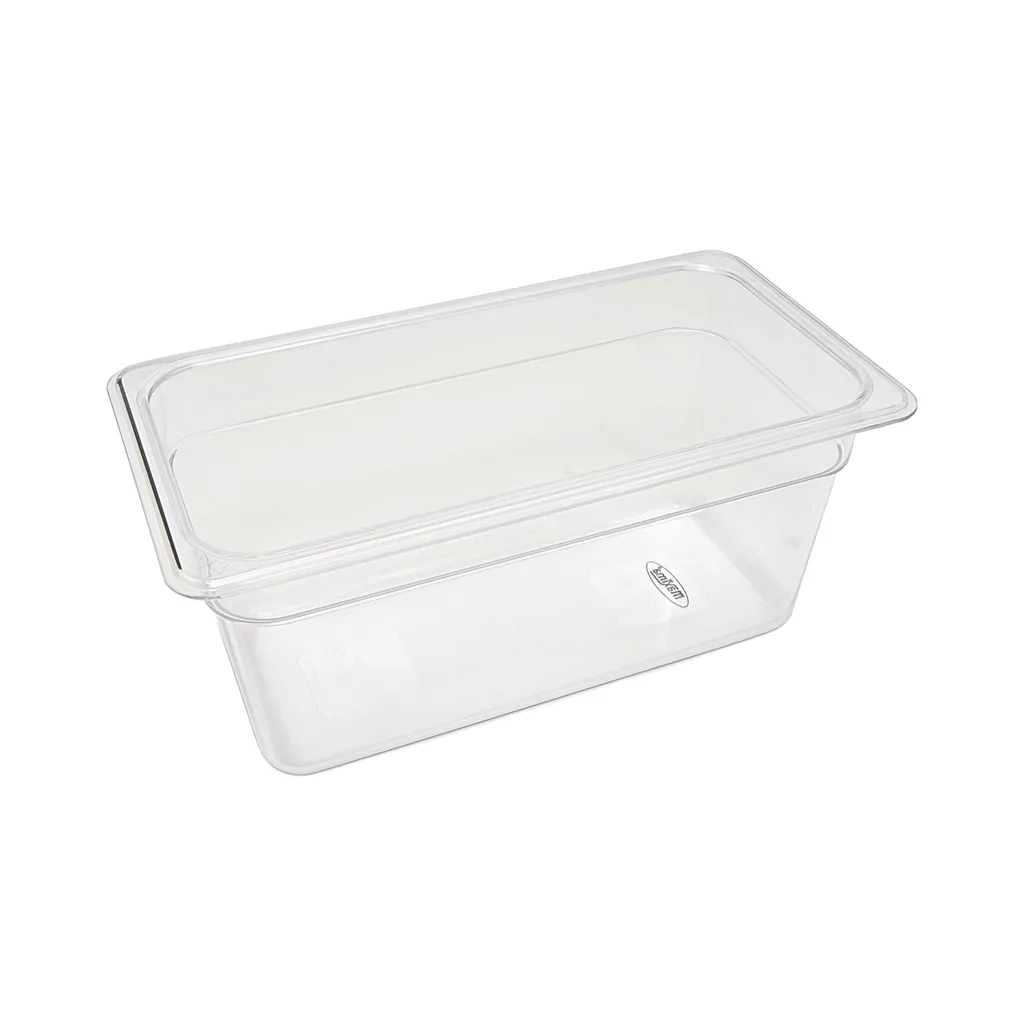 El uso de policarbonato en los contenedores GN ofrece muchas ventajas. Por ejemplo, este material es casi indestructible y, gracias a su transparencia, se puede ver a través de él por todos los lados para saber cuál es el contenido del contenedor. Además, es un material inodoro y sin sabor que no absorbe estas cualidades de los alimentos. La mayor ventaja, sin embargo, reside en la facilidad de limpieza. Los contenedores GN de policarbonato se pueden lavar en el lavavajillas, se secan rápidamente y soportan temperaturas de -40 a 100°C. Este contenedor GN también tiene los bordes doblados y las esquinas redondeadas para una mayor sujeción, lo que los hace seguros y fáciles de usar.