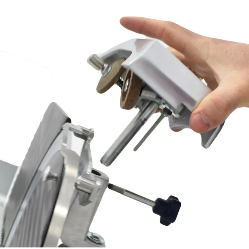 • Fabricada en aluminio anodizado satinado de alto brillo que garantiza altos niveles de higiene de las partes que entran en contacto con el corte, es resistente a ácidos, sales y procesos de oxidación.