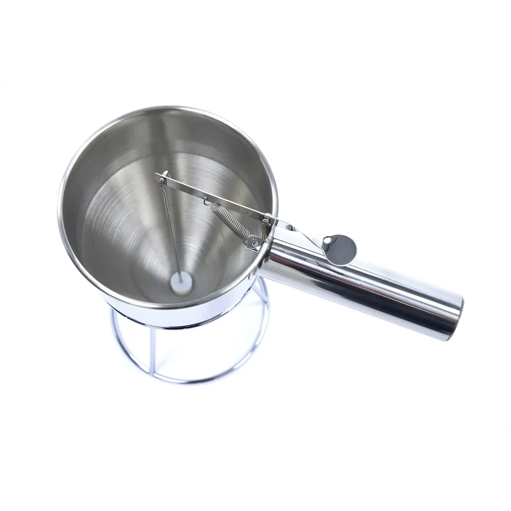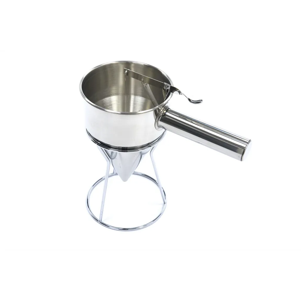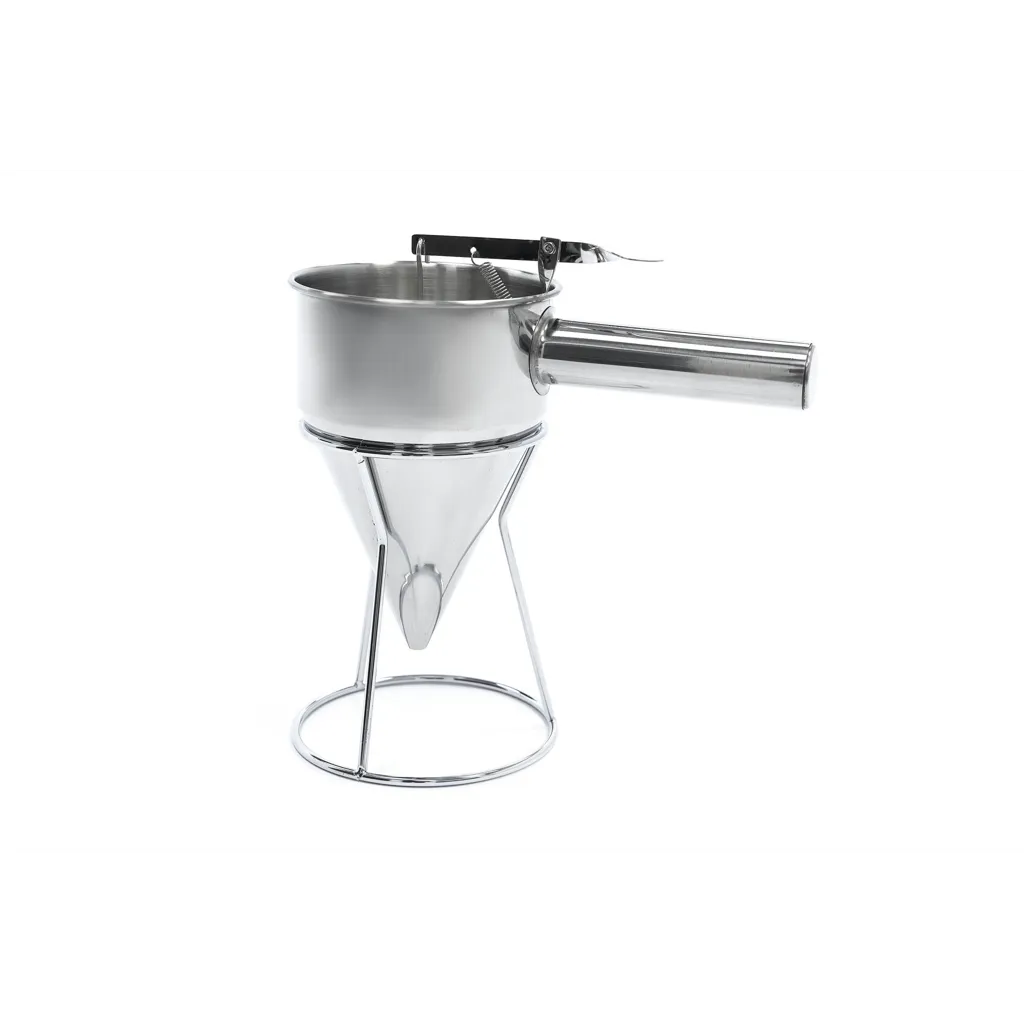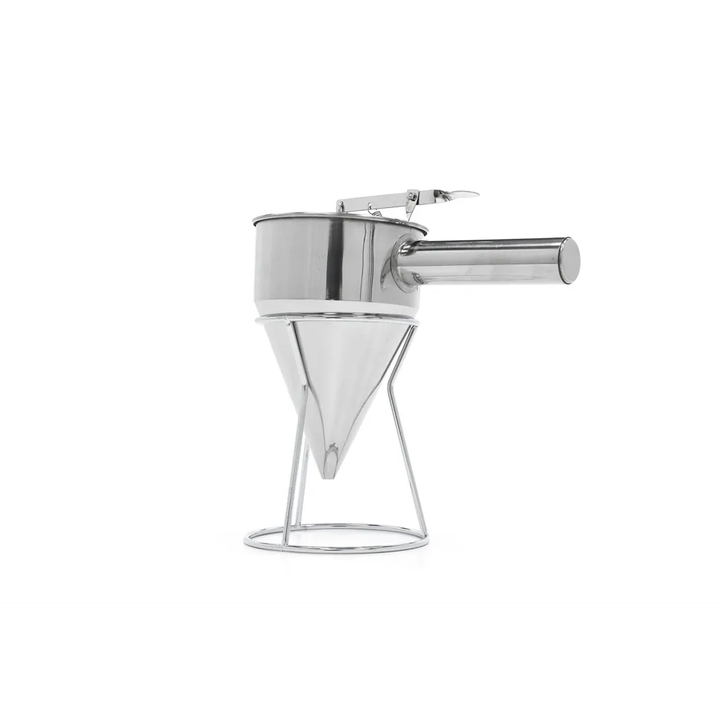 ¿Rellenar moldes para hornear, hacer tortitas o crepes, o verter la masa en moldes para magdalenas y muffins sin ensuciar? Esto es muy fácil de hacer con este dispensador de masa profesional. El dispensador de masa está fabricado en acero inoxidable y tiene una capacidad de 1,6 litros. Es ideal para verter la masa de forma fácil y perfectamente dosificada en todo tipo de moldes. Con este utensilio de cocina no sólo se trabaja de forma muy limpia, sino también de forma higiénica, ya que no se entra en contacto con la masa.