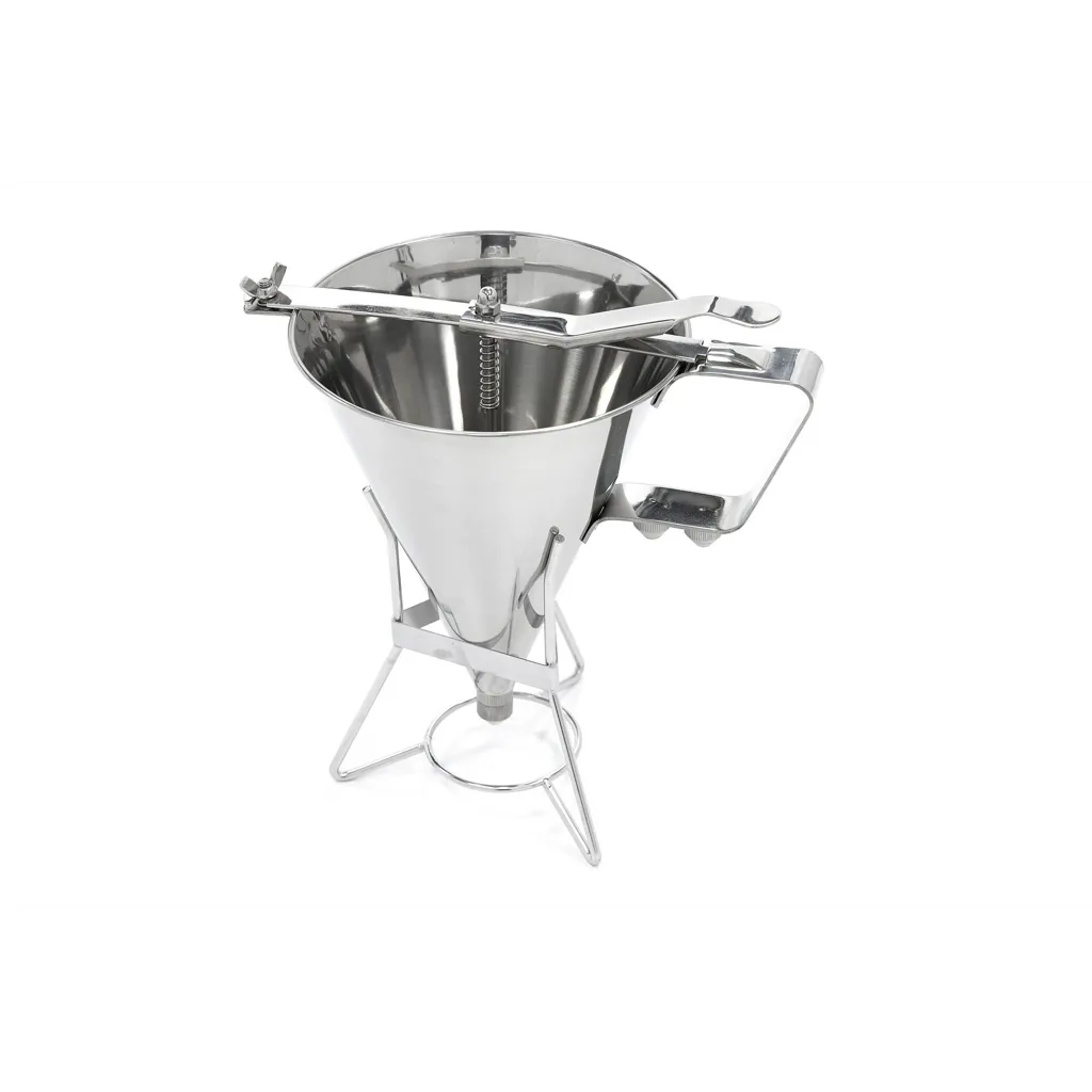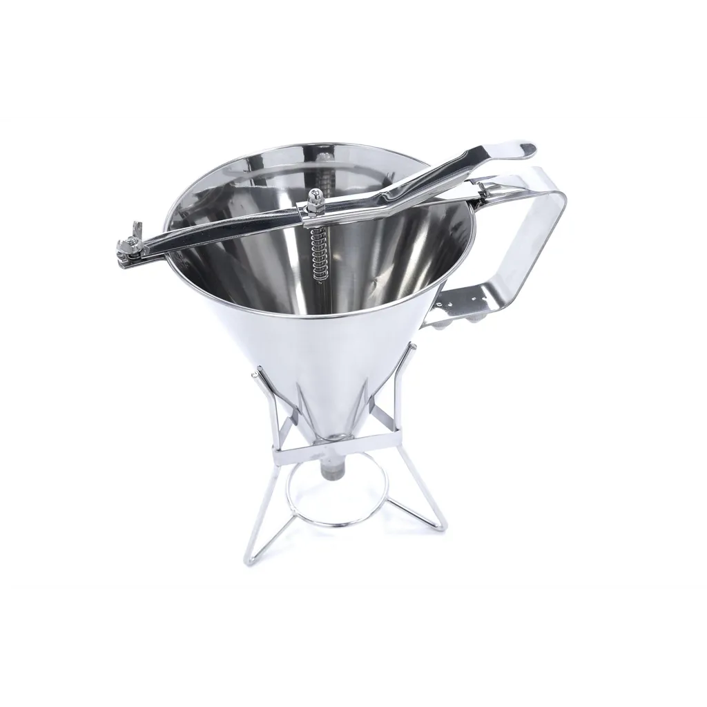 ¿Rellenar moldes para hornear, hacer tortitas o crepes, o verter la masa en moldes para magdalenas y muffins sin ensuciar? Esto es muy fácil de hacer con este dispensador de masa profesional. El dispensador de masa está fabricado en acero inoxidable y tiene una capacidad de 1,6 litros. Es ideal para verter la masa de forma fácil y perfectamente dosificada en todo tipo de moldes. Con este utensilio de cocina no sólo se trabaja de forma muy limpia, sino también de forma higiénica, ya que no se entra en contacto con la masa.