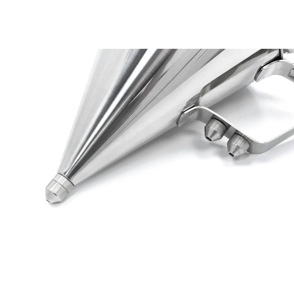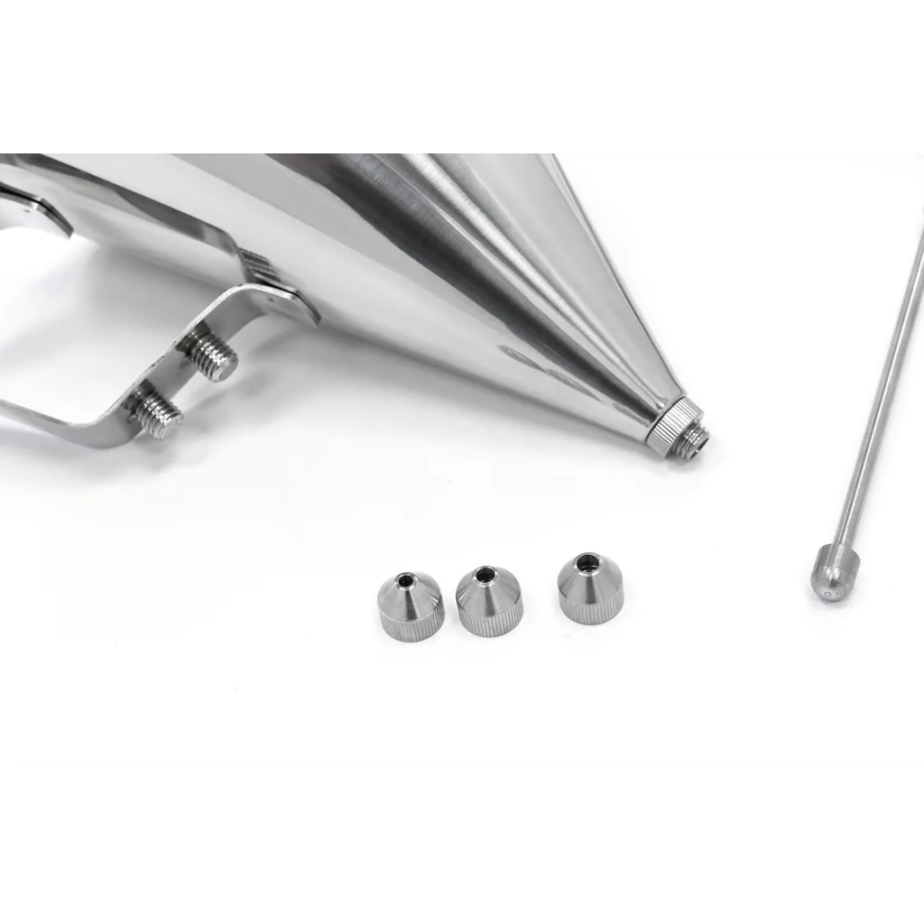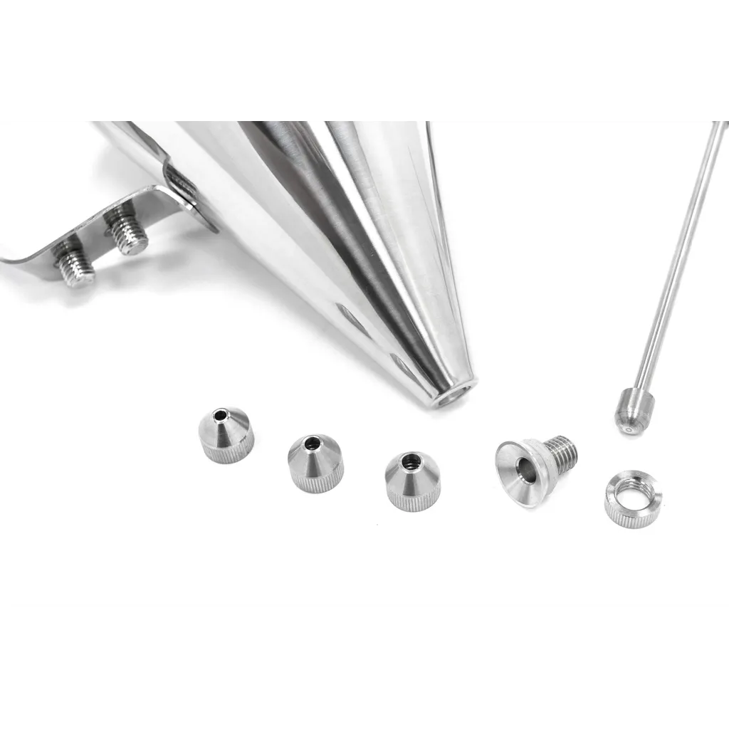 Este robusto dispensador de masa tiene un acabado sólido y durará años. Gracias a la carcasa de acero inoxidable, el dispensador puede soportar un trato duro. Para facilitar aún más el llenado de los moldes, este dispensador de masa está equipado con un soporte para verter la masa. Con el botón de dosificación, usted determina la cantidad de masa que debe utilizar. Además, el dispensador de masa viene con tres orificios de llenado, cada uno con un tamaño diferente.