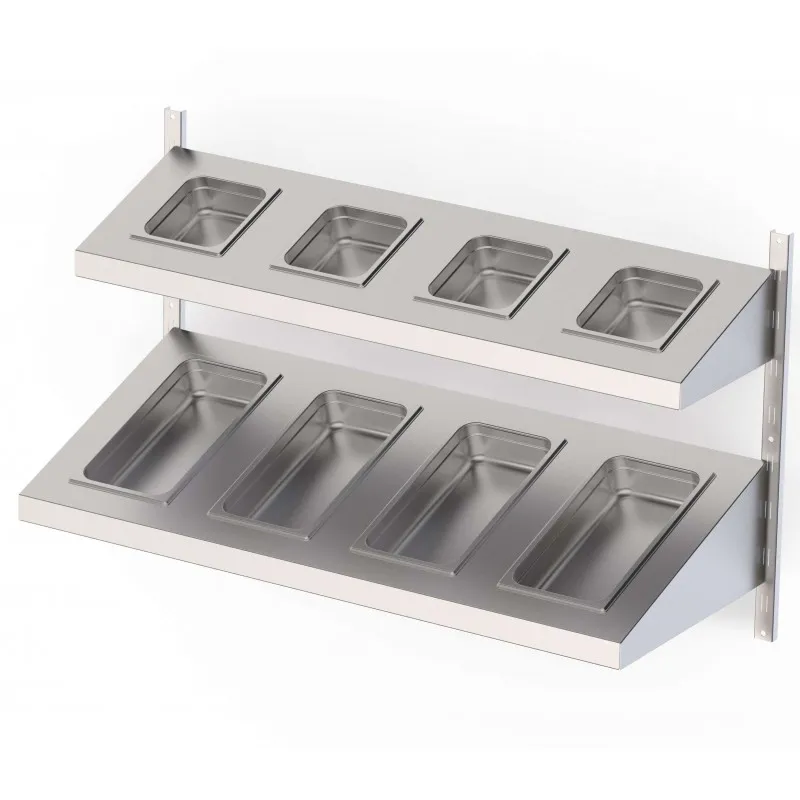 Estantería Mural Acero Inoxidable con Estante Inclinado Cubeta GN Para Cremallera Mural Fondo 250 – 1000×250 mm – 2,512 Kg