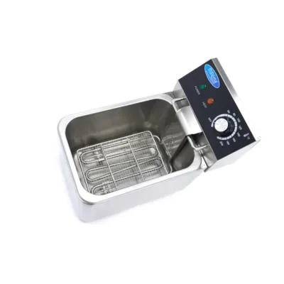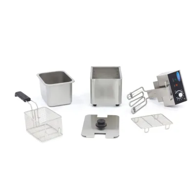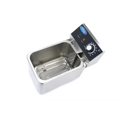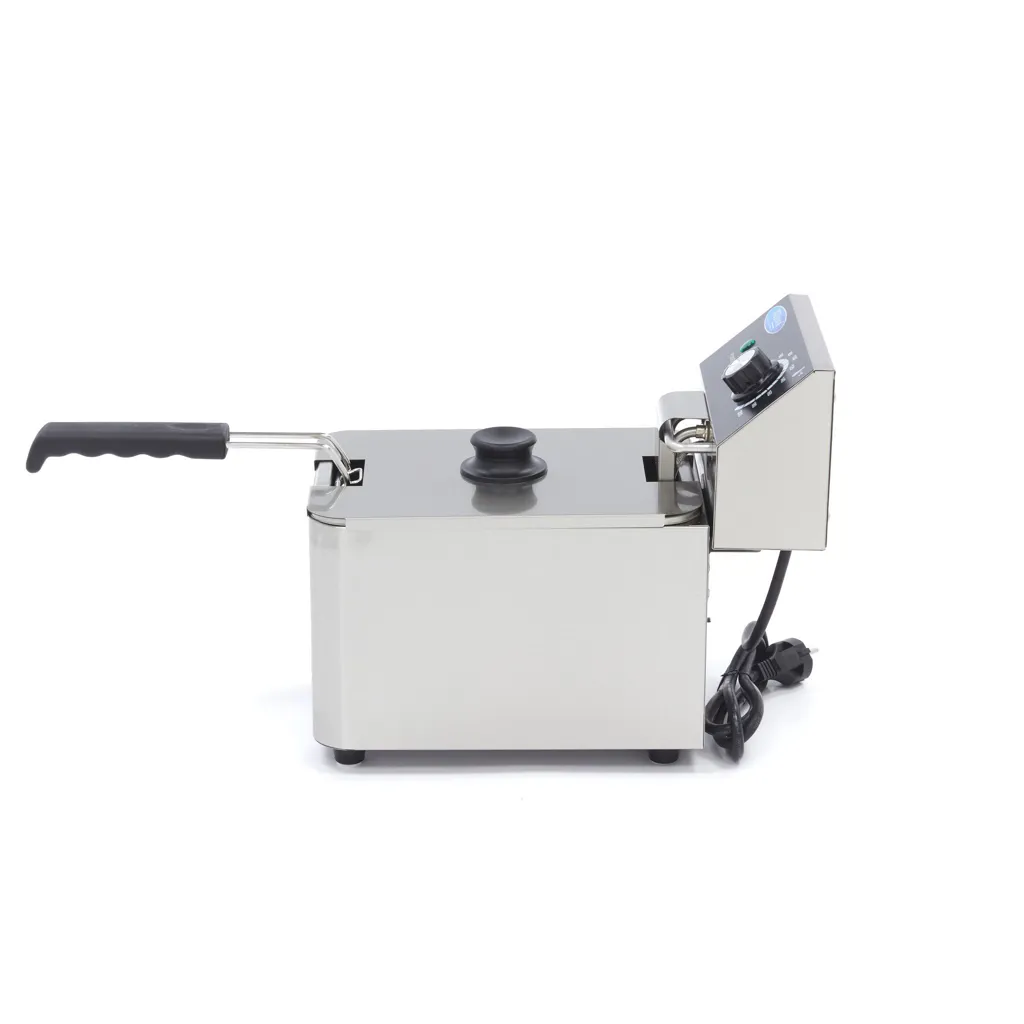 Esta freidora eléctrica individual tiene una capacidad de 4 litros y es muy adecuada para el uso diario. Con esta freidora podrá preparar fácilmente 0,8 kg de patatas fritas y aperitivos en cualquier cocina de hostelería profesional. Los diferentes tipos de alimentos suelen requerir diferentes temperaturas de fritura, por lo que esta freidora profesional viene equipada con un termostato ajustable para que pueda establecer fácilmente la temperatura precisa entre 50°C y 200°C. En cuanto se apague la luz naranja, la freidora estará a la temperatura deseada y podrá comenzar el proceso de fritura.
