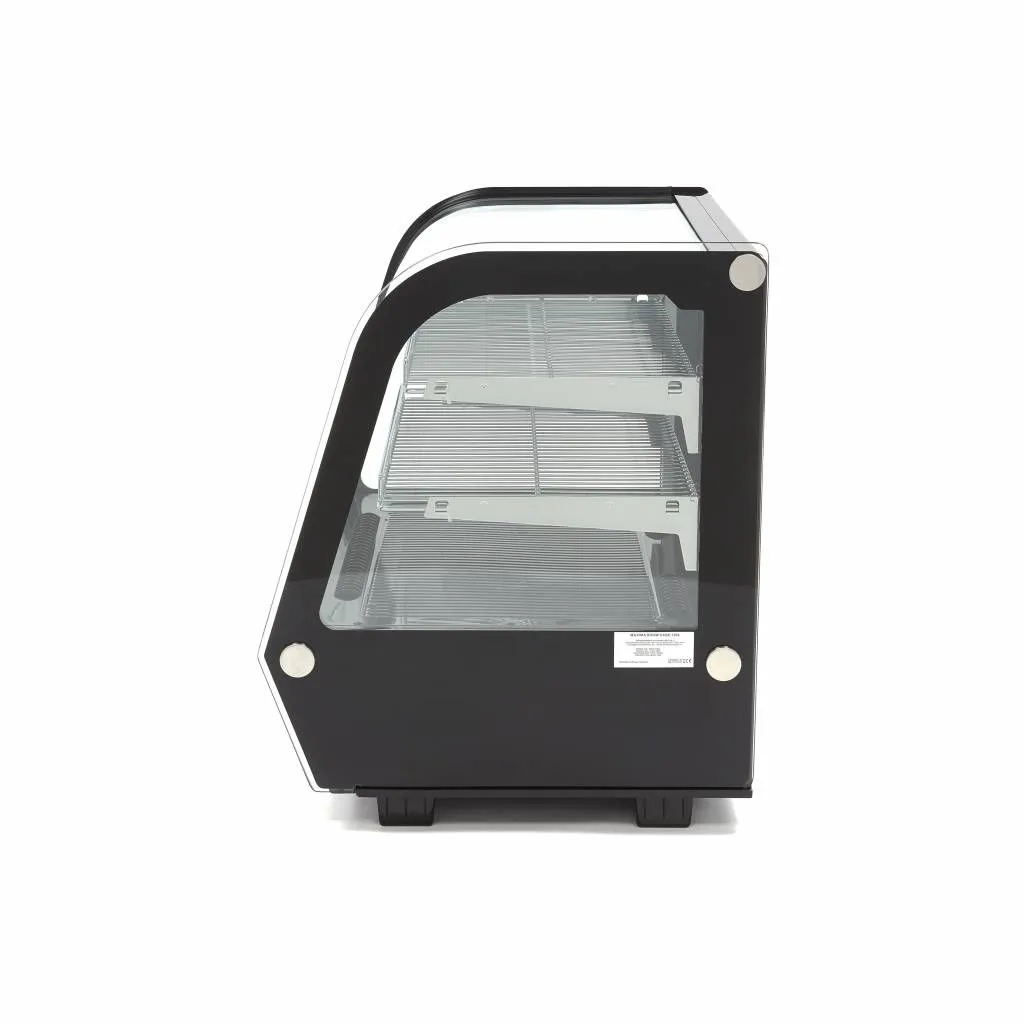 La vitrina refrigerada de lujo de 120 litros de capacidad tiene un bonito acabado y es ideal para su uso en restaurantes, hoteles, cafeterías y otros establecimientos de restauración. Viene con dos estantes cromados de altura regulable. El frigorífico expositor tiene doble acristalamiento e iluminación LED incorporada en su interior. Esto hace que sea muy adecuado para exponer pasteles, chocolates y otros aperitivos para los clientes y los invitados. En la parte trasera hay dos puertas correderas, para poder añadir o quitar productos fácilmente.