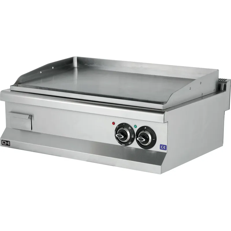 • Placa de cocción de acero rectificado de 12 mm. de espesor con peto en acero inoxidable soldado desde la parte superior que asegura su estanqueidad y facilita la labor de limpieza diaria.