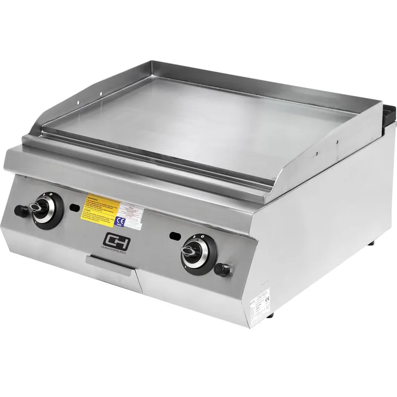 • Placa de cocción de acero rectificado de 12 mm. de espesor con peto en acero inoxidable soldado desde la parte superior que asegura su estanqueidad y facilita la labor de limpieza diaria.