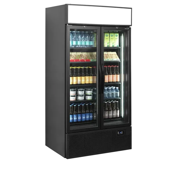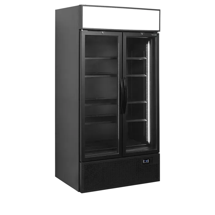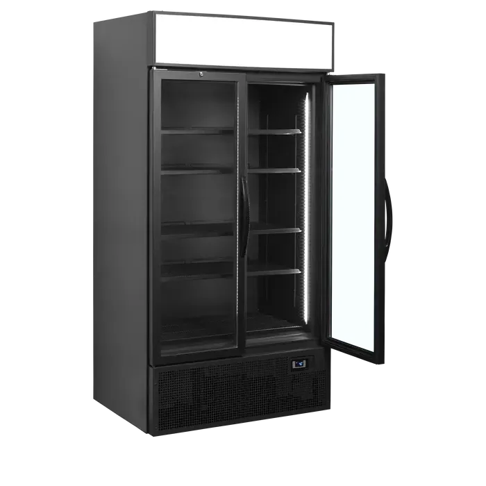Expositor refrigerado color negro de 2 puertas con canopy