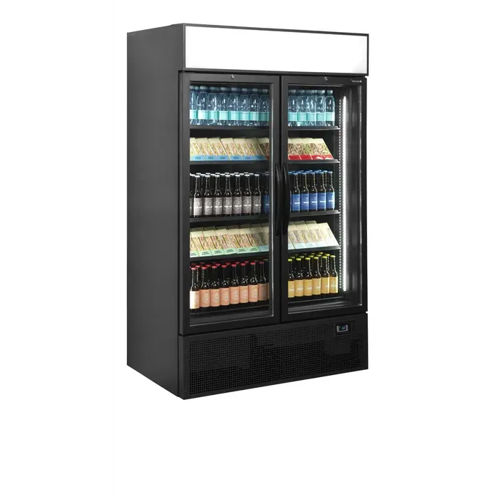 La unidad mantiene las bebidas frías a la vez que presenta y promociona los productos de manera óptima.