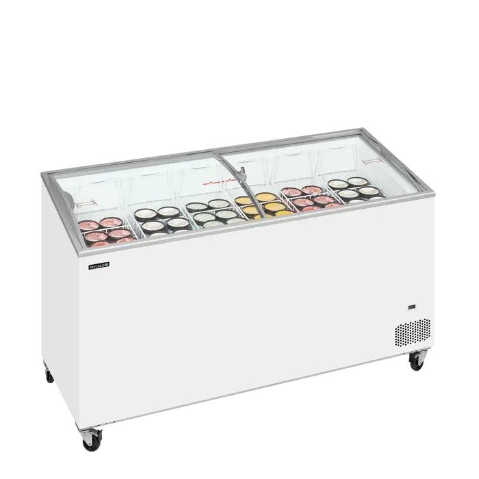 La gama SCEB dispone de tapas deslizantes de cristal curvas en la parte frontal inferior, en lugar de por detrás. Ambas características mejoran la exposición y presentación visual del contenido. Gracias a ello, el congelador es ideal para exponer alimentos congelados, incluidos helados y polos. La temperatura puede mantenerse en torno a -14 ºC para el helado o a -21 ºC para otros alimentos congelados.