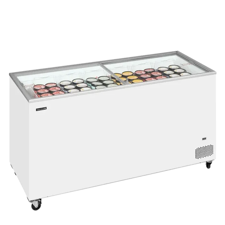 Congelador horizontal con tapas correderas de cristal plano