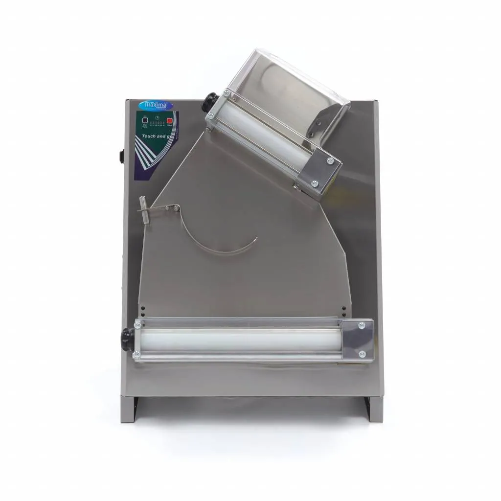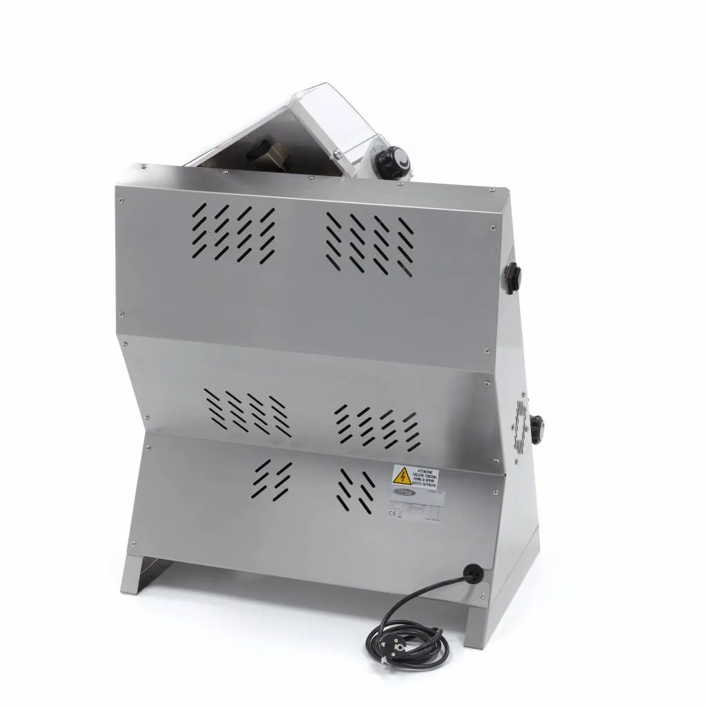 Gracias a su duradero y potente motor, este rodillo puede manejar fácilmente un peso de masa de entre 210 y 700 g. Para trabajar con seguridad, este rodillo para pizza está equipado con una cubierta de plástico transparente y un interruptor de seguridad. Para limpiar el rodillo, no utilice agua, sino que extraiga las piezas del aparato y limpie todo con un paño seco. Así se evita que los restos de harina se peguen al aparato.