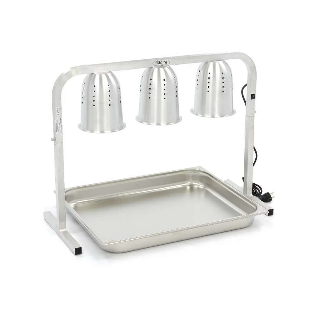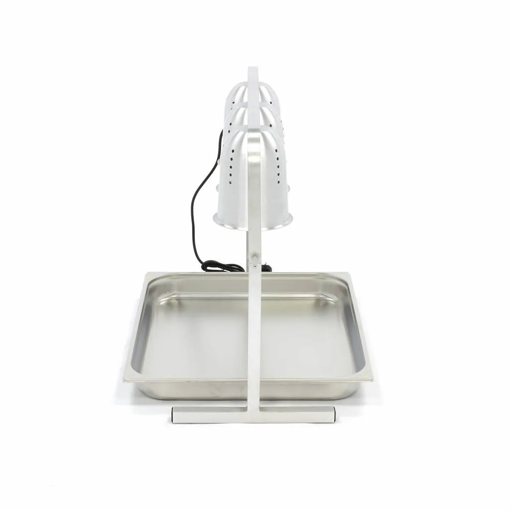 Esta lámpara calefactora es muy fácil de usar. Puede cambiar la altura de las lámparas para ajustar los niveles de intensidad del calor a sus necesidades específicas. Los reflectores de aluminio ventilados garantizan que no se produzca sobrecalentamiento. Gracias a las lámparas de infrarrojos, los platos se mantienen calientes sin quemarse ni cocerse más. Con su pedido también recibirá tres bombillas de 275 W y una bandeja 2/1 GN de 6,5 cm de profundidad.