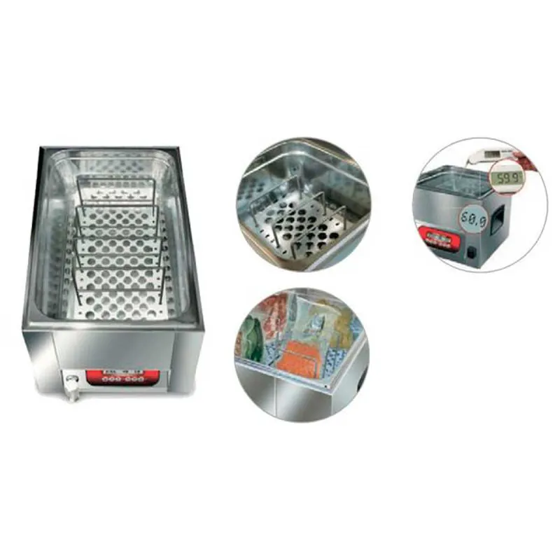 • Con la máquina sous-vide profesional se preparan recetas únicas con carnes, pescados y huevos, previamente envasados al vacío sumergidos en agua a una temperatura constante y pudiendo añadir especias, líquidos aromáticos como aceite, vinagre o caldos. Este proceso es llama cocción al vacío a baja temperatura, muy similar a la cocción al baño maría, pero más profesional porque se controla totalmente el tiempo y la temperatura, que mantiene todos los jugos y nutrientes, creando una fusión texturas y sabores sorprendentes, cosa que no se consigue con la cocina tradicional.