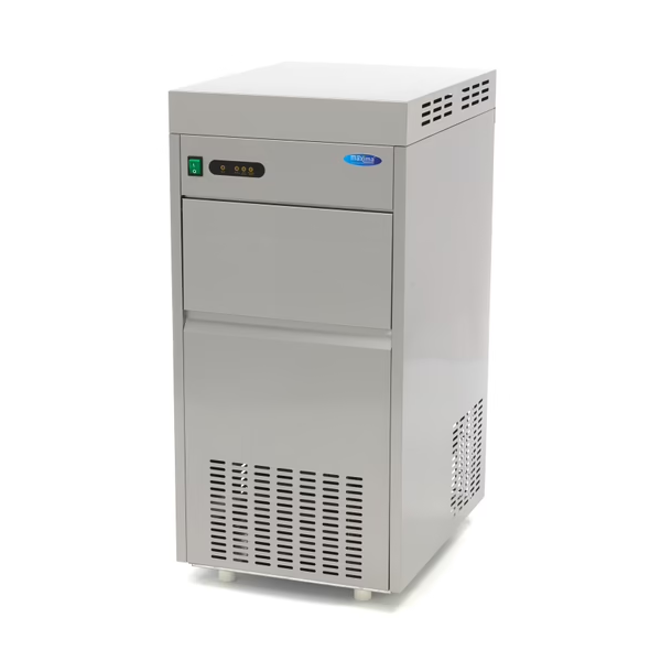 Tanto si se trata de presentar productos de forma atractiva como de mantener frescas las ensaladas recién hechas o transportar alimentos a la temperatura adecuada, el hielo en escamas es útil para muchos establecimientos de restauración. Esta compacta máquina de hielo picado produce hasta 85 kg de hielo cada 24 horas. Gracias al espacio de almacenamiento de su interior, también podrá tener fácilmente a mano 20 kg de hielo, listo para usar. Con la ayuda de la práctica cuchara para hielo que viene con la máquina de hielo, podrá servir la cantidad justa de hielo picado de forma higiénica. Otra ventaja de este fabricador de hielo en escamas es que resulta cómodo colocarlo debajo de la barra o el mostrador.