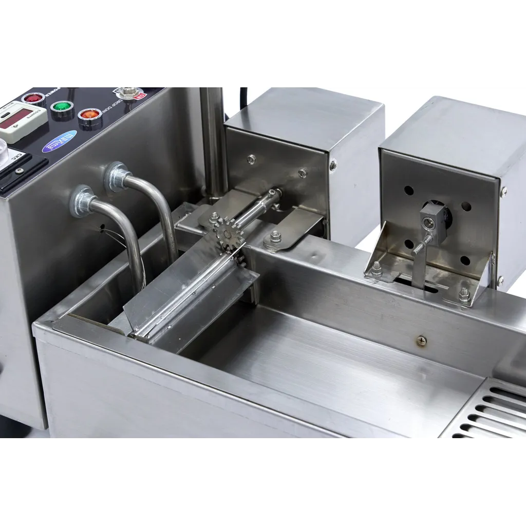 Esta dona profesional es totalmente automática y puede hacer 500 donas por hora. Esta máquina es fácil de usar y robusta gracias a sus materiales de acero inoxidable. Esta potente máquina puede soportar un uso intensivo y durará muchos años.