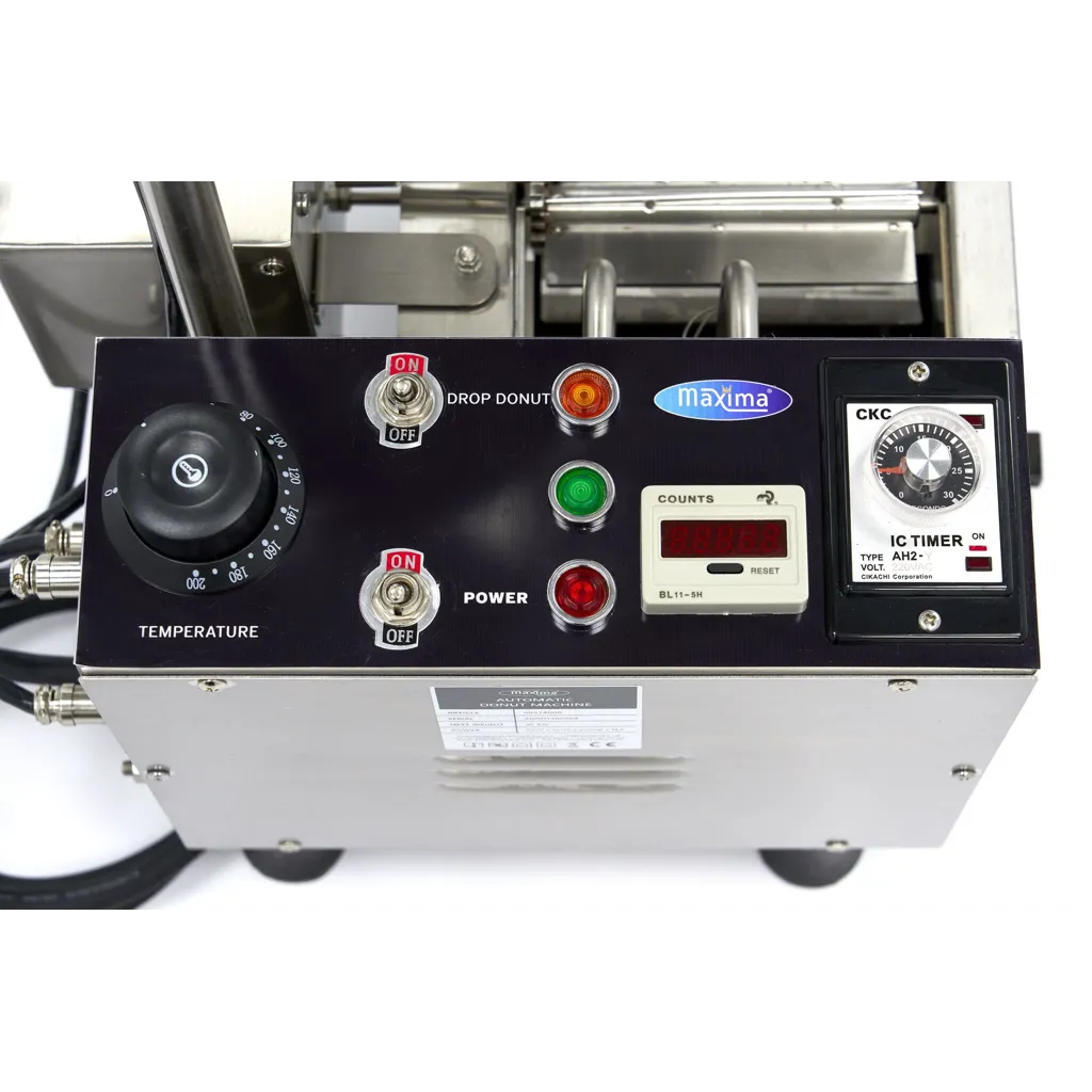 La máquina para hacer donuts también tiene un contador de donuts que lleva la cuenta de cuántos donuts se hacen. También está equipada con un temporizador. El aparato se apoya sobre patas de goma para que no se mueva durante su uso. El interior y el exterior son de acero inoxidable y se limpian fácilmente con un cepillo, una esponja o un paño húmedo y agua tibia. El aceite de fritura se puede vaciar con el grifo de vaciado.