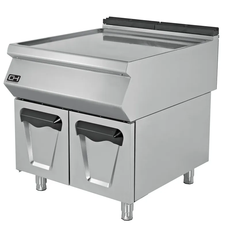 • Plano de trabajo, paneles laterales, paneles de mandos, y chimeneas en acero inoxidable.