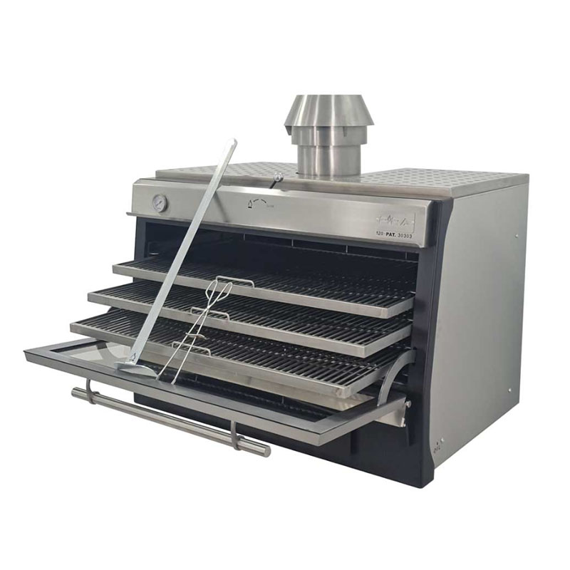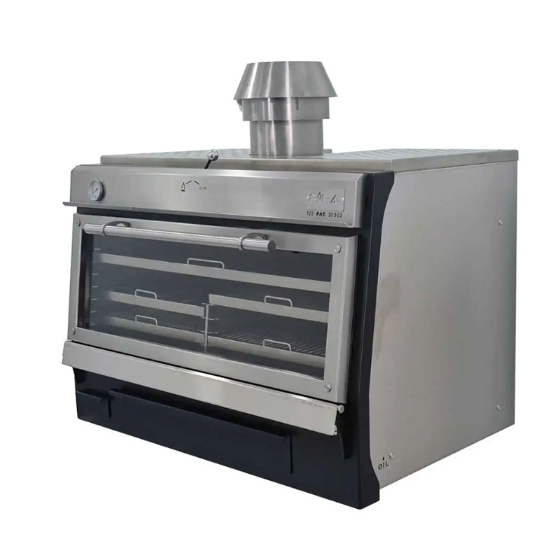 Se pueden cocinar todo tipo de alimentos en él: pescado, verduras, etc. El Pira 120 LUX está equipado con un cristal que soporta temperaturas de hasta 750ºC, permitiendo ver los alimentos durante la cocción, lo que ayuda de nuevo a mantener la temperatura y reducir aún más el consumo de carbón.