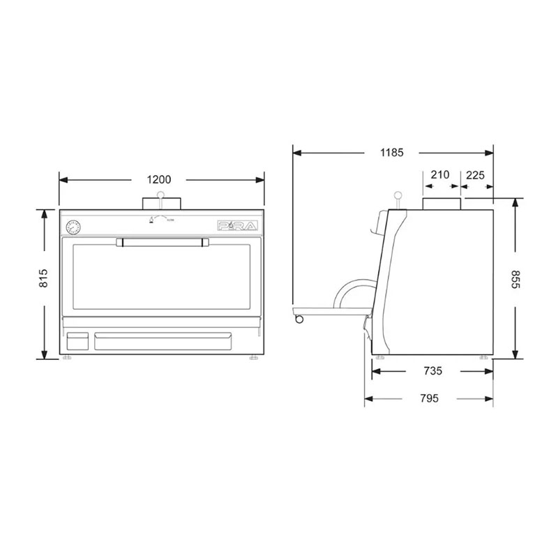 El PIRA 120 LUX, conocido también como el “gigante”, es el horno de carbón profesional más grande y competitivo del mundo. Este modelo tiene una capacidad de producción nunca antes vista en un horno de carbón.
