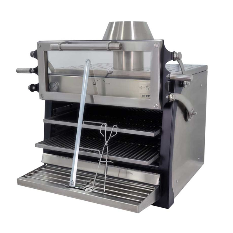 El Pira 80 LUX ED está equipado con un cristal que soporta altas temperaturas, hasta 750ºC, que permite ver los alimentos durante la cocción, lo que ayuda otra vez, a mantener la temperatura y reducir el consumo de carbón.