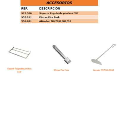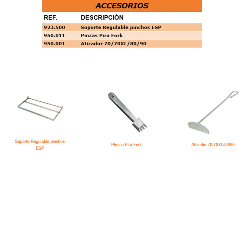 INCLUYE: 1 atizador 70/70XL/80/90, 1 Pinzas Pira Fork y 1 Soporte Regulable pinchos ESP.