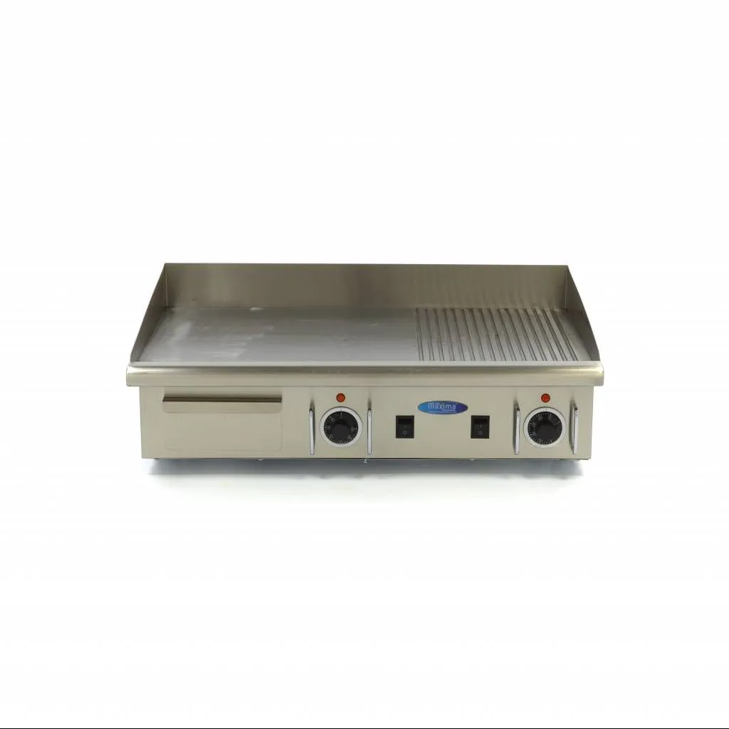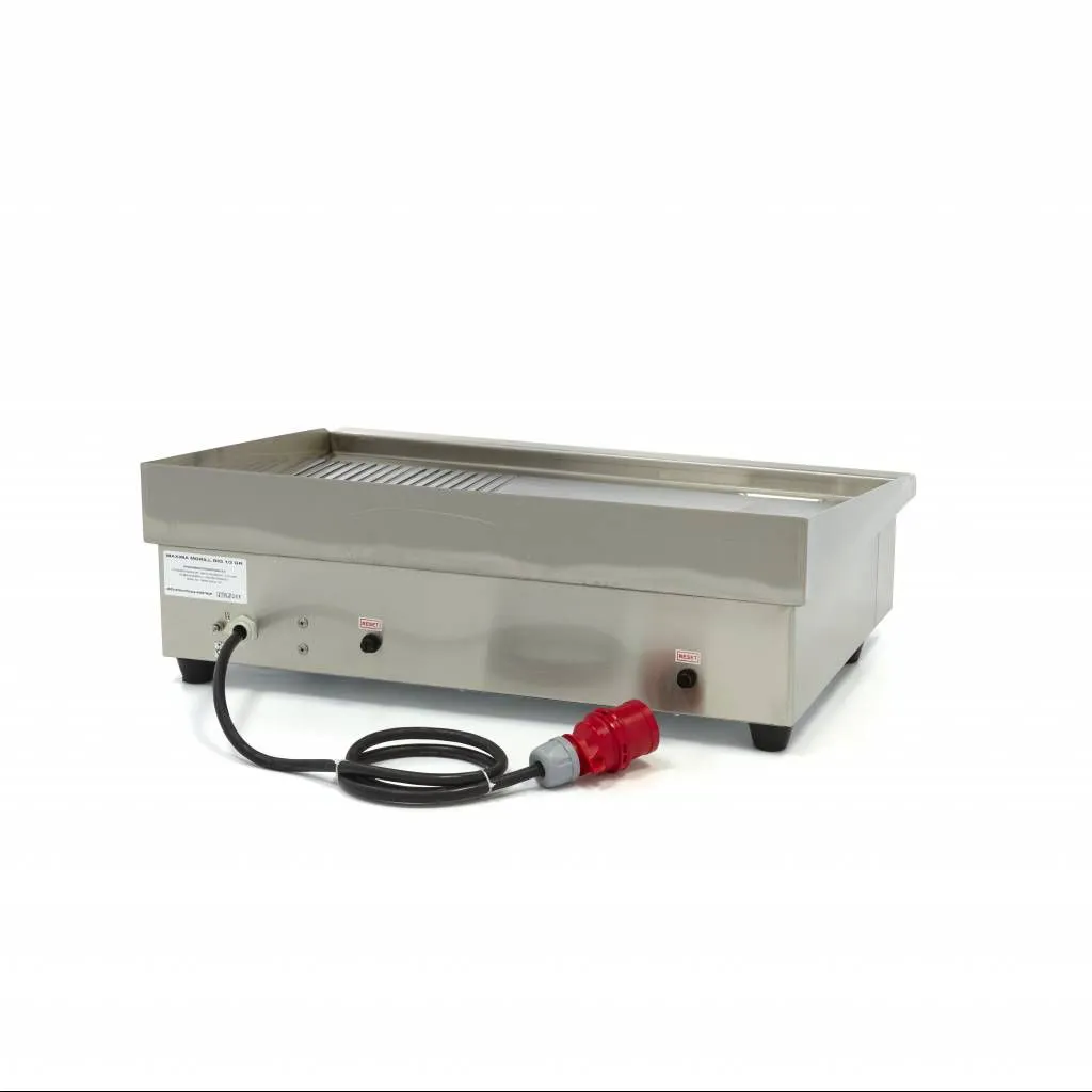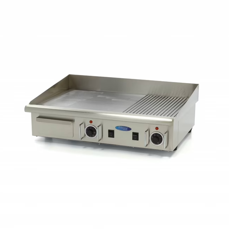 - Superficie mitad lisa, mitad acanalada con placa de grill de 6 mm
