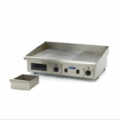 Los sabores y las vitaminas se conservan durante más tiempo cuando cocina en una plancha de asar eléctrica. Para obtener los platos de carne, pescado o verduras más sabrosos, utilice esta plancha profesional con placa lisa y ranurada de 6 mm de grosor. La plancha de asar eléctrica no sólo se calienta rápidamente, sino que también se enfría rápidamente para facilitar la limpieza después de su uso. Con una superficie de asado de 73 cm, podrá cocinar grandes porciones de comida de forma uniforme de una sola vez. Esta plancha de asar eléctrica es ideal para un uso diario intensivo en cualquier cocina de hostelería.