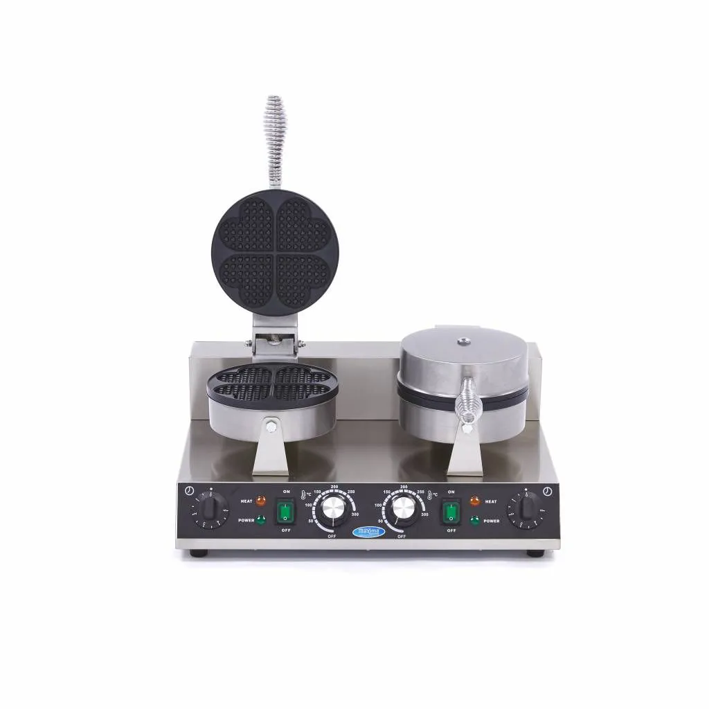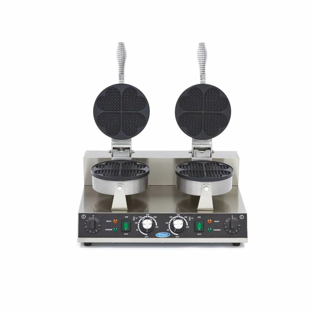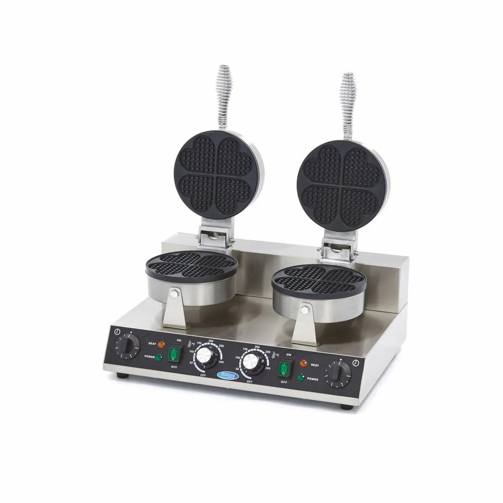Los gofres más deliciosos se hacen en casa, justo en su propia cocina. Esta gofrera profesional le ayuda a crear los más deliciosos gofres en forma de corazón. Puede utilizar esta gofrera doble para hacer gofres perfectos en el mercado o la feria, pero también en un restaurante o una cafetería. Sirva gofres en forma de corazón con un postre, por ejemplo. Como el tiempo es precioso en una cocina profesional, este aparato le ayudará a crear el gofre perfecto de forma rápida y sencilla.