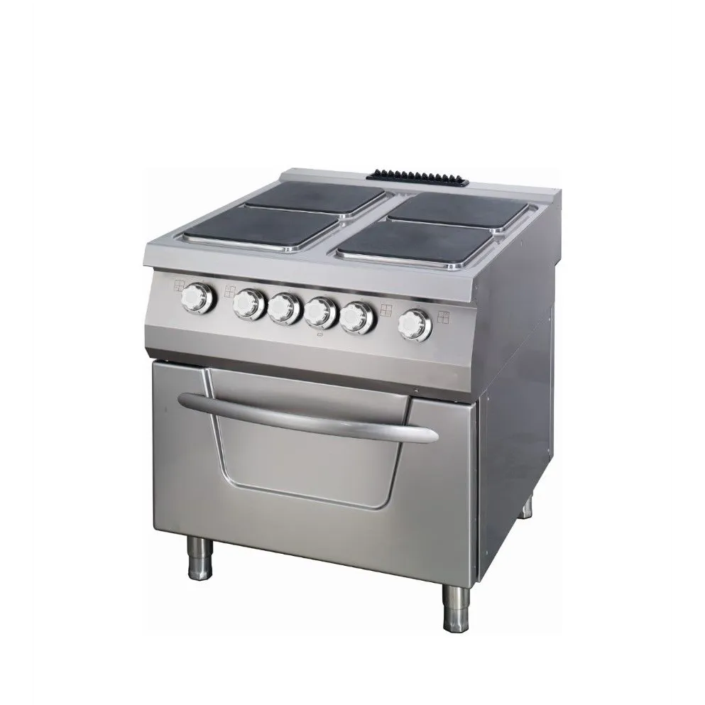 Esta cocina eléctrica tiene cuatro quemadores y un horno eléctrico. Puede ver inmediatamente que se trata de una cocina de nuestra gama premium Cooking Range 900 Series. Esta cocina está fabricada con materiales de primera calidad y está especialmente diseñada para un uso intensivo. Las placas de hierro fundido están herméticamente cerradas y forman una sola unidad en la parte superior.