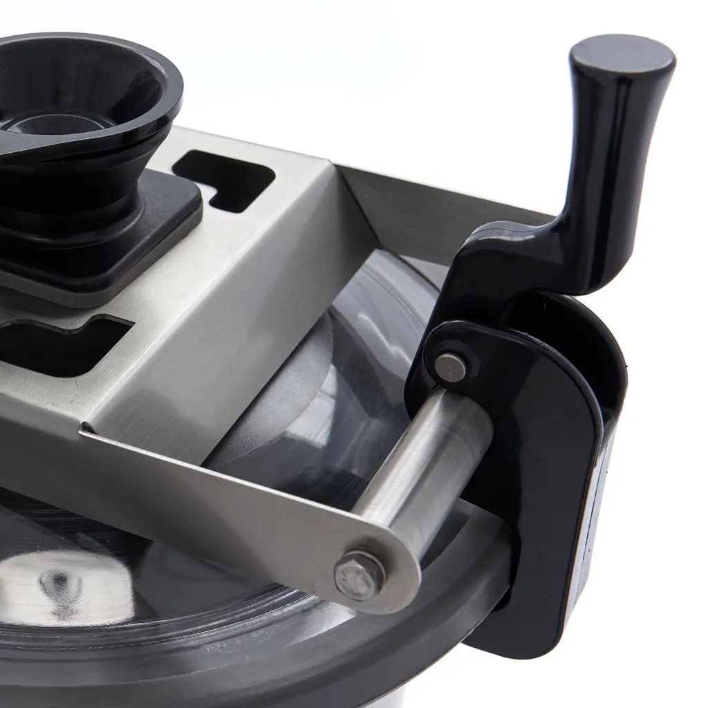Este robot de cocina profesional es muy fácil de usar. Coloque los ingredientes dentro del bol grande de acero inoxidable. A continuación, coloque la tapa sobre la máquina y apriete el pestillo de seguridad situado junto al bol. Es importante que sólo introduzca los ingredientes en el bol cuando el aparato esté apagado. Además, dispone de una tapa transparente para que pueda ver el progreso de su tarea. También hay una abertura en la tapa para que pueda añadir con seguridad otros ingredientes como aceite, agua o leche. Gracias a las cuatro cuchillas de acero inoxidable, este robot de cocina corta todo tipo de alimentos con facilidad. Después de procesar, puede levantar el bol utilizando el brazo basculante. Este robot de cocina dispone de cuatro patas de goma para que se mantenga firme en el suelo cuando esté en uso.