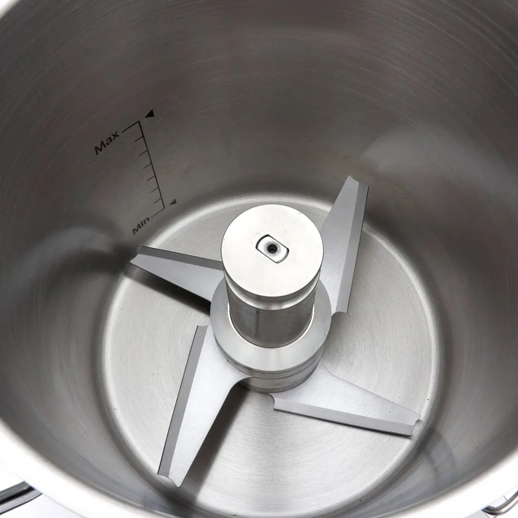 Puede ahorrar mucho tiempo en su cocina profesional con este robot de cocina comercial. Corta y mezcla diversos productos sin ninguna molestia. Entre los alimentos adecuados para él se incluyen carne y pescado, verduras y fruta, frutos secos, fruta deshidratada, queso y chocolate. Este robot también mezcla alimentos para hacer deliciosos pesto, salsas, mezclas de hierbas y aderezos. Incluso puede preparar rellenos hechos de carne con este robot de cocina. La máquina ofrece dos velocidades de procesamiento, 1500 y 3000 RPM, para diferentes texturas.