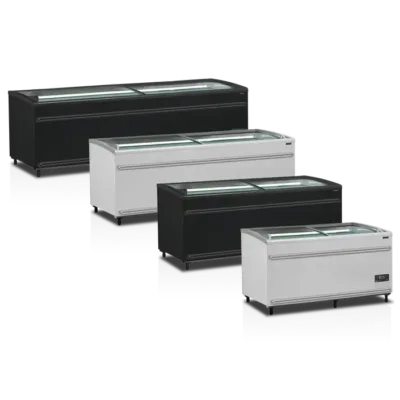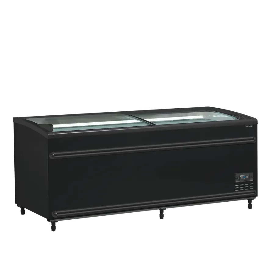 Isla de supermercado bitemperatura color negro con cristal curvo para una visibilidad completa
