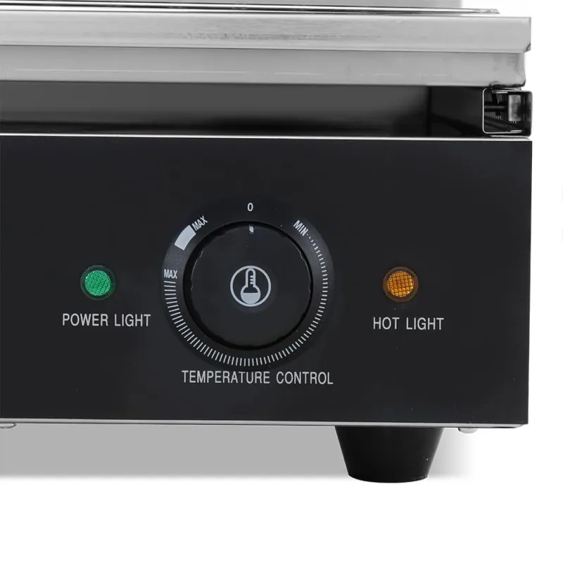• Dispone de dos indicadores luminosos, que se encuentran en la parte frontal, junto al regulador de temperatura. Estos indicadores muestran si el dispositivo está encendido o apagado, así como si ha alcanzado la temperatura deseada. Con el regulador de temperatura puede seleccionarse la temperatura de las resistencias superiores. Dependiendo de la altura existen distintos rangos de temperatura.