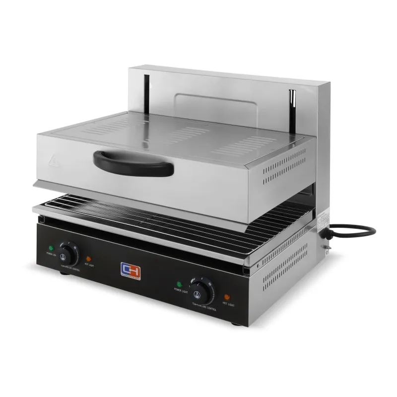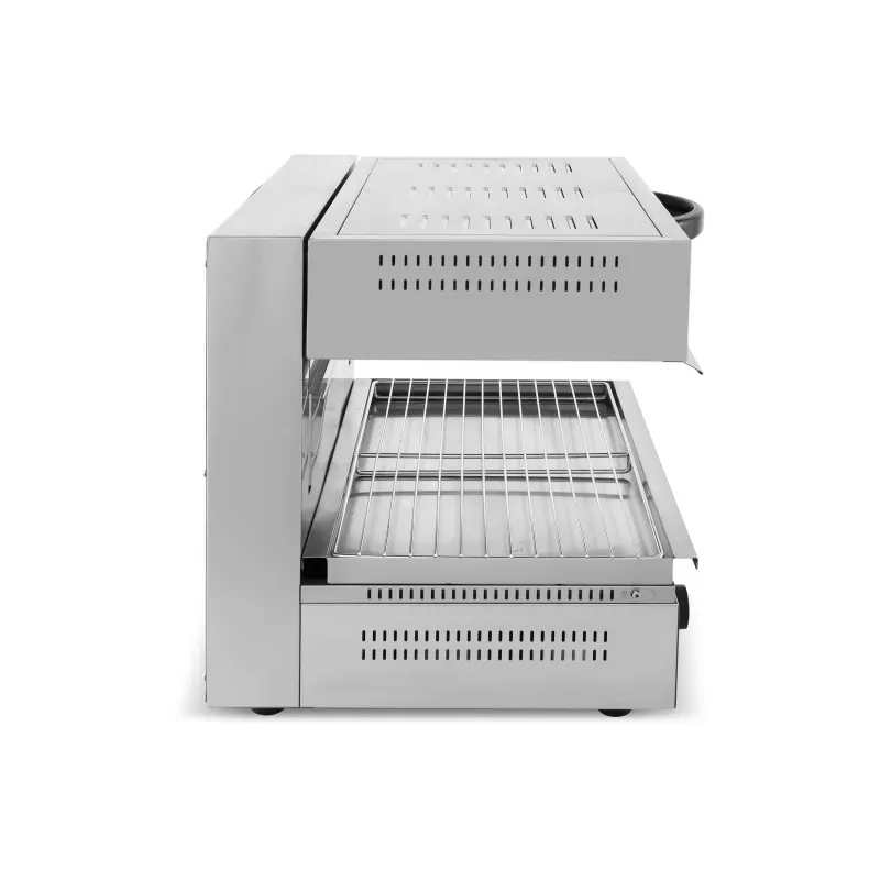 • Facilita el trabajo en grandes cocinas, en el sector de la gastronomía y hostelería. Sobre la rejilla de la salamandra podrás colocar, platos, platillos de postre o cazuelas de barro, y exponerlos así a los elementos calefactores superiores. De esta forma no solamente podrás elaborar y perfeccionar tus platos, sino también mantenerlos calientes a la temperatura perfecta.