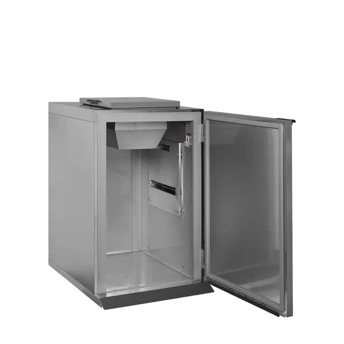 El refrigerador de residuos ofrece una solución higiénica para la eliminación de residuos en cocinas industriales, supermercados o en establecimientos como los veterinarios. Los residuos se mantienen a temperaturas adecuadas para los productos frescos, lo que reduce la degradación de los desperdicios orgánicos.